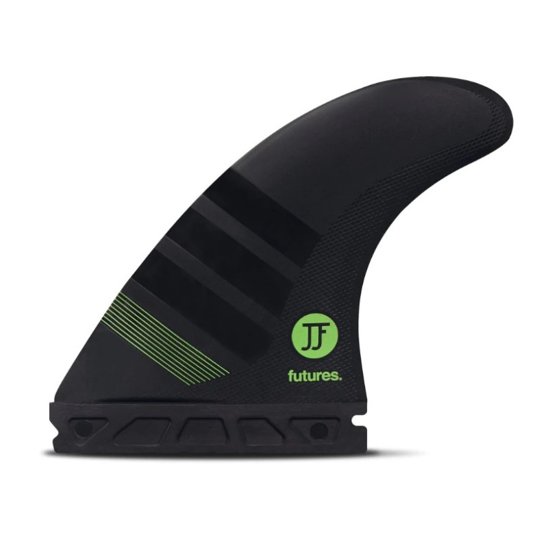 The John John Florence Alpha is a medium sized thruster in the Neutral template category. It is the same template that JJF rode to back-to-back World Championships in Techflex construction. Made in Huntington Beach, the Alpha construction combines Bureo’s NetPlus recycled fishing nets with Futures’ Compound 6 (C6) carbon and air infused technology.