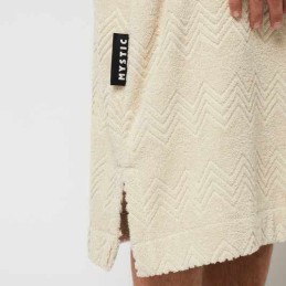 Step into the Jacquard poncho during changes for an effortless blend of strength and style. This 100% cotton poncho showcases a geometric pattern that offers comfortable texture and lasting quality. Designed with functionality in mind, it features spacious arm openings, a large adjustable hood, and an oversized fit. Secure your items in the kangaroo pocket and let the subtle photoprint on the chest add an artistic touch to this staple.