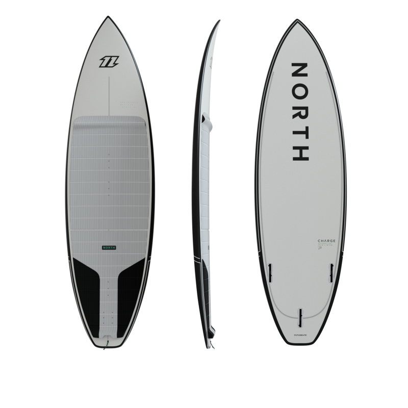 Developed for surfing. Engineered for kitesurfing. Smooth and powerful down the line, turning hard in the pocket and releasing on-demand, the Charge is a high-performance surfboard. It is a fast, dedicated surf shape with loads of projection for a powerful vertical attack in larger waves. The Charge also excels at carving, driving upwind, onshore riding, and is versatile enough for aerial tricks. Our Carbon Innegra Futurelite construction maximises the board’s strength, without losing flex or responsiveness, while the DualShock EVA inserts increases its durability and protects from heel dents. Refined in 2023 for improved response, speed and drive, the new Charge delivers an even smoother, more powerful ride with a positive feel and more radical turns. Feedback from riders charging some of the world’s biggest waves led to us making very slight refinements to the shape to improve the handling at speed and drive through the turns. We've moved the wide point of the board slightly forward, and we've increased the concave under the front foot. We've also reshaped the rounded surf rails to be lower and more refined, giving the board more grip when you’re carving the wave face. Also new for 2023 is the two-piece no-slip fine corduroy deck grip, with front and rear kicks for exceptional comfort and control.