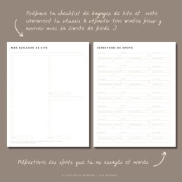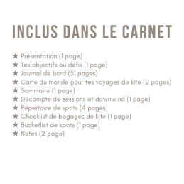 Prêt à vivre une expérience kitesurf, snowkite ou wing unique ? Le Carnet de Kite est là pour t'accompagner dans toutes tes aventures aérotractées ! Conçu par une adepte passionnée de ces sports et de voyages, ce carnet de notes sera ton meilleur allié pour capturer chaque instant.