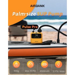Toute petite, ultra-pratique et livrée avec son sac étanche, la pompe électrique Airbank Pulse Pro est pensée pour vous suivre partout, même sur votre planche. Légère et compacte, elle se glisse facilement dans votre sac. Idéale pour gonfler votre SUP sans effort, où que vous soyez !